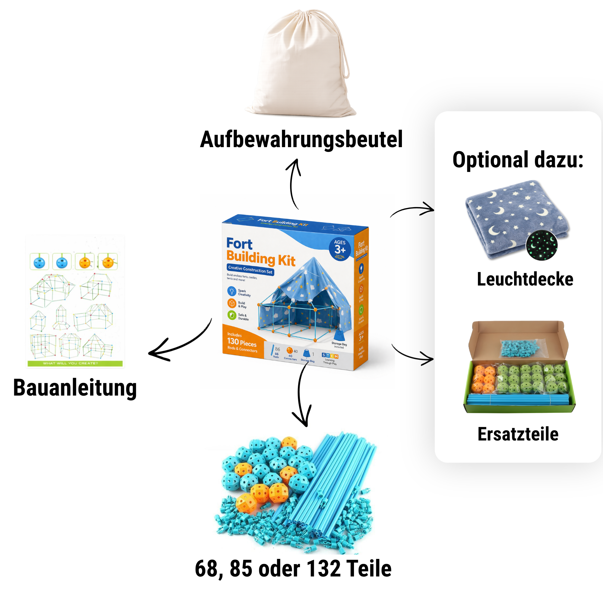 Mit diesem Set erschafft ihr gemeinsam beeindruckende Bauwerke – ob geheime Höhle, epische Burg oder fantasievolle Spielwelt. Jedes Projekt wird zu einem echten Abenteuer.